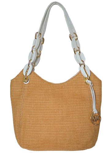 Michael Kors Natural Paper Straw Lilly MD Shoulder Tote Bag Handbag Purse - White